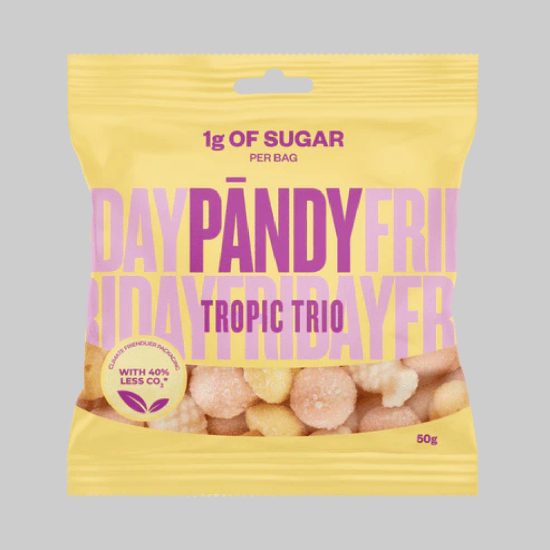 Pandy Candy er designet for de som nekter å velge mellom helsemålene sine og søtsuget. Disse deilige godbitene tilbyr den perfekte «skyldfrie» snackopplevelsen med en markedsledende ernæringsprofil. Nå med en mer miljøvennlig emballasje, er disse posene den ultimate følgesvennen på farten for alle som ønsker å nyte en fantastisk smaksopplevelse uten den typiske sukkerkrasjen fra tradisjonelt godteri.
